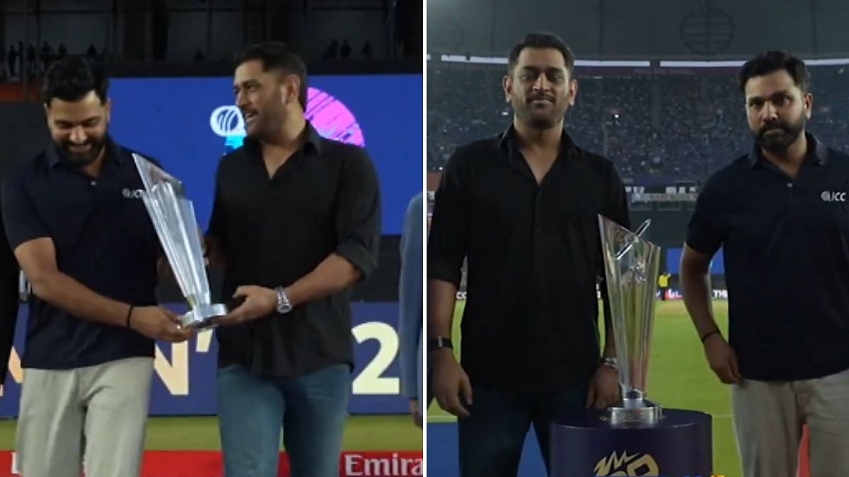 Former captains MS Dhoni and Rohit Sharma walked together with the ICC T20 World Cup 2026 trophy at the Narendra Modi Stadium in Ahmedabad. Dhoni and Rohit are both T20 WC captains, with Rohit being the defending champion. Dhoni was the first ever to lift the trophy way back in 2007.